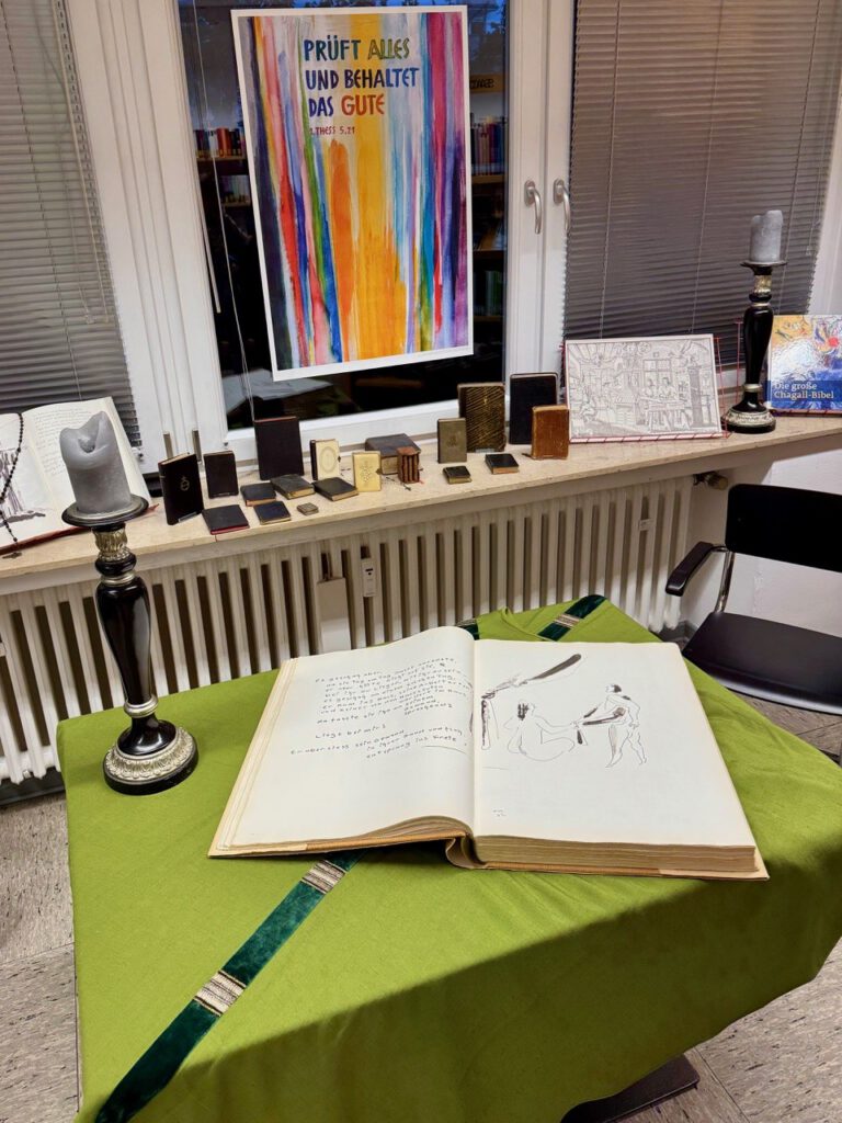 Dieses Jubiläum – 100 Jahre Buchsonntag – möchte das Team der KÖB Liebfrauen-Überwasser nutzen und einmal das „Buch der Bücher“ in den Mittelpunkt stellen. In der Zeit vom 29.10. – 16.11. können Sie in der Bücherei die der Gemeinde gehörende Großausgabe der von Heinrich Gerhard Bücker gestalteten Bibel mit exemplarisch illustrierten Texten einsehen und bewundern.