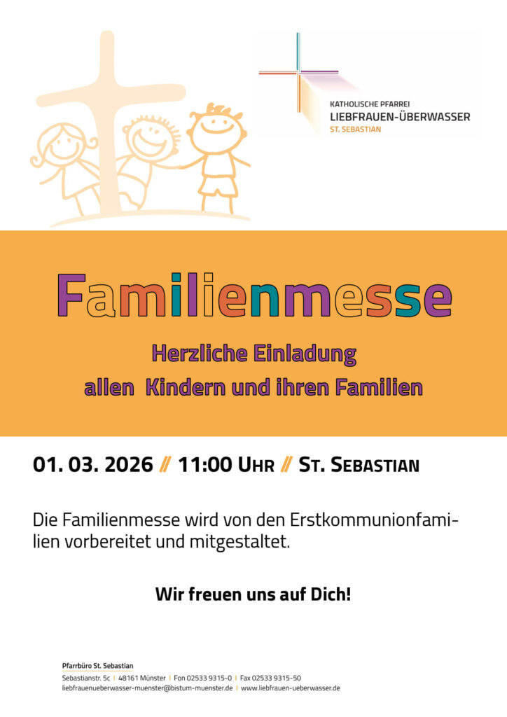 Am So., 01.03. laden wir wieder ganz herzlich alle Kinder mit ihren Freund:innen und Familien um 11 Uhr zur Familienmesse ein. Dieser Gottesdienst wird als Gemeinschaftsgottesdienst der Erstkommunionkinder gefeiert.